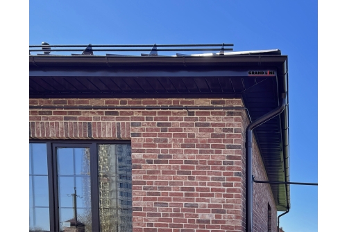 Водосток Grand Line PE 125×90 обладает водопропускной способностью на 25% больше, чем у других производителей водосточных систем с полукруглым желобом. Такая производительность обеспечена увеличенной глубиной желоба.
